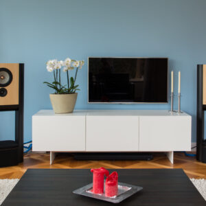 Am unteren Ende des Frequenzspektrums haben wir eine noch größere Verbesserung erzielt. Unser neu entwickelter Digital Motional Feedback(SB1) Subwoofer hat eine beeindruckende 30 dB geringere Verzerrung, was bedeutet, dass der Bassbereich jetzt genauso transparent ist wie die Mitten und Höhen.